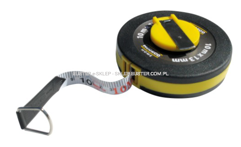 - Taśma miernicza wyposażona w mechanizm z korbką ułatwiający zwijanie taśmy