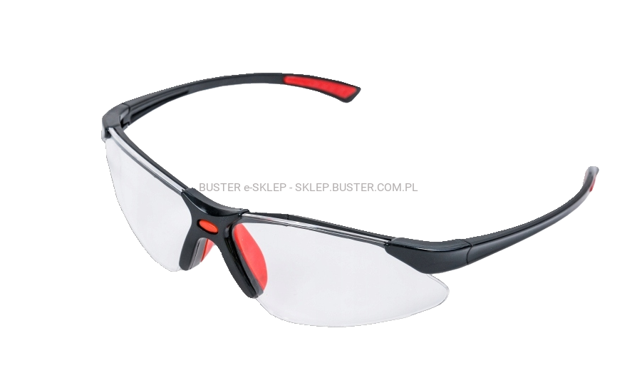 Okulary ochronne, przeciwodpryskowe z przezroczystymi szybkami wykonanymi z poliwęglanu.