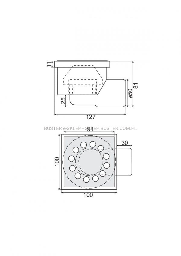 KRATKA KANALIZACYJNA 10X10CM ODPŁYW BOCZNY FI50 METALOWA