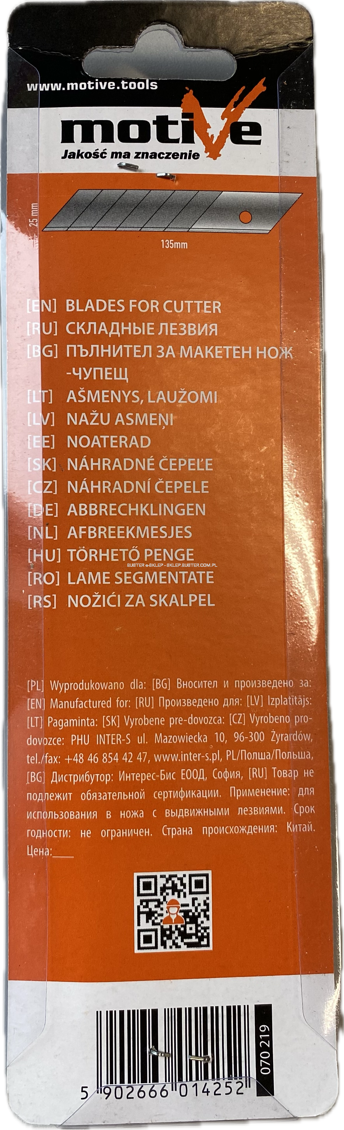 OSTRZA ŁAMANE 25MM (10SZT) 070219 MOTIVE