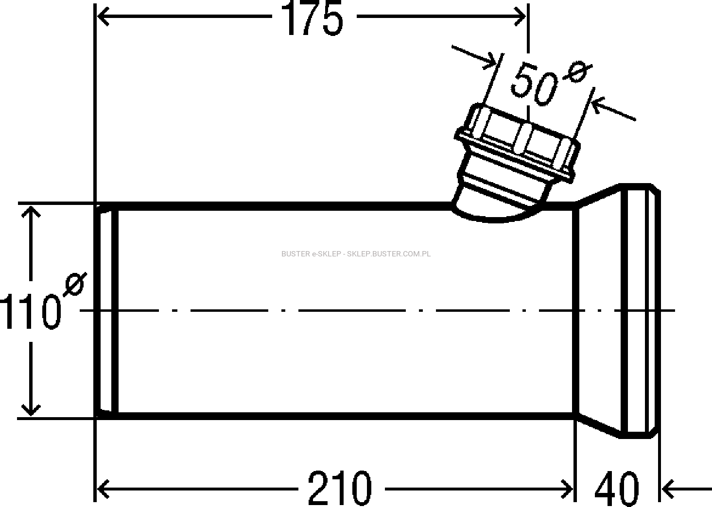 PRZYŁĄCZE PROSTE DO WC FI 110MM Z ODEJŚCIEM 50MM