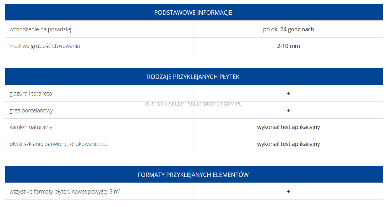 - bezpieczeństwo stosowania do wszelkich formatów płytek, w tym płytek o powierzchni powyżej 5 m2,