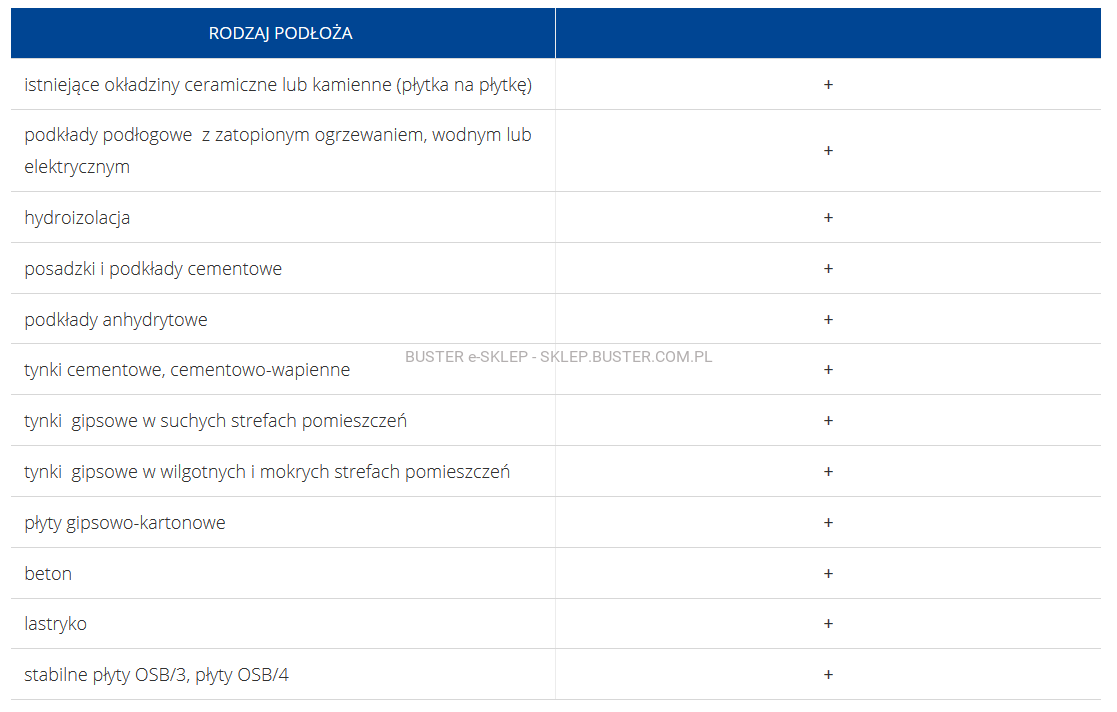 - doskonała przyczepność do wszelkich rodzajów okładziny,