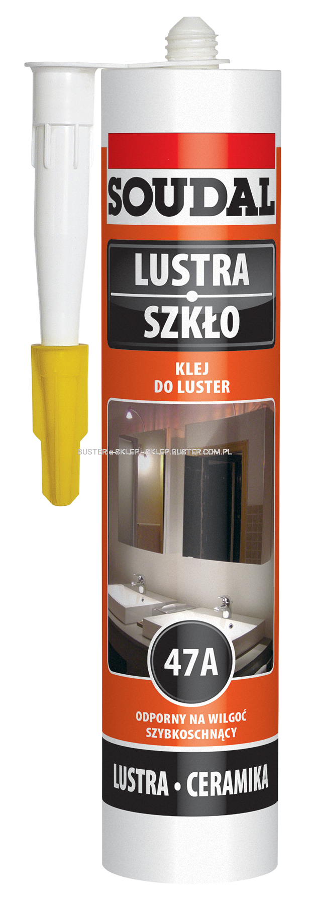 Klej 47A marki Soudal to wodoodporny klej montażowy na bazie kauczuków syntetycznych, który przeznaczony jest do mocowania luster na wszelkich podłożach budowlanych z wyjątkiem PE i PP. Charakteryzuje się bardzo dobrą odpornością na działanie niskich i wysokich temperatur. Klej do luster 47A możemy również wykorzystać do klejenia szklanych konstrukcji, mocowania płytek ceramicznych oraz różnego rodzaju materiałów izolacyjnych. Jest szybkoschnący i nie wymaga wcześniejszego gruntowania podłoża, co zasadniczo skraca czas wykonania prac montażowych. Klej do luster 47A nie reaguje z powierzchnią luster wysokiej jakości (w przypadkach wątpliwych należy wykonać próbę).