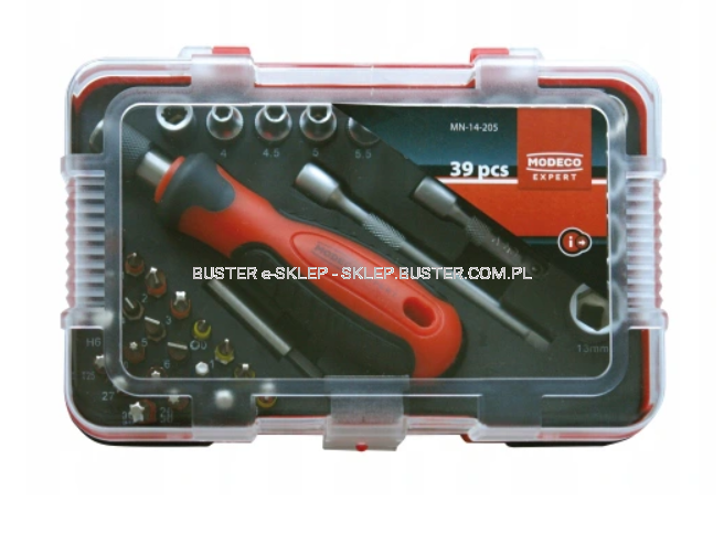 ZESTAW NARZĘDZI WKRĘTAK, PRZEDŁUŻKI, NASADKI 39 SZT MN-14-205 MODECO