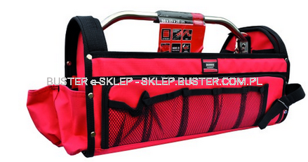 Wykonanie ze specjalnego materiału typu Cordura, który zapewnia wysoką odporność na przetarcia. Otwarta konstrukcja torby umożliwia łatwy dostęp do narzędzi i akcesoriów. Wzmocnienie szwów taśmą poliestrową powoduje zwiększenie wytrzymałości i żywotności torby. Metalowa rączka dodatkowo wzmacnia i usztywnia konstrukcję torby. Posiada dopinany pas naramienny, zwiększając komfort przenoszenia na większe odległości. Posiada 23 kieszenie, co pozwala na umieszczenie dużej ilości narzędzi i akcesoriów w sposób uporządkowany.