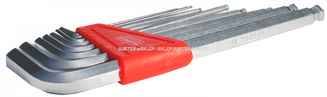 Komplet 9 kluczy sześciokątnych z kulką ze stali CR-V.