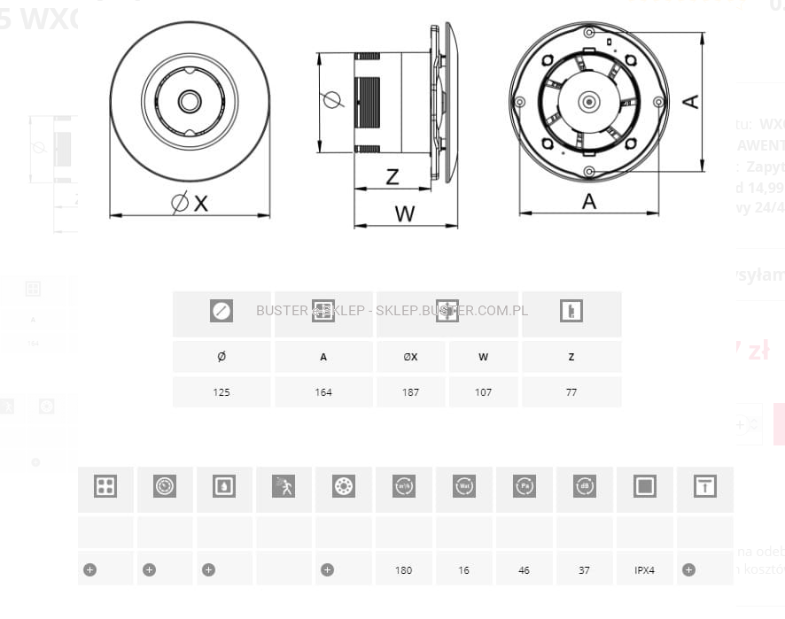 WENTYLATOR SUFITOWY ORBIT FI125 WXO125H AWENTA