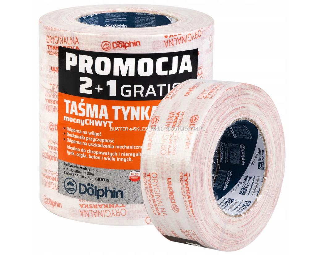TAŚMA MALARSKA 2×48 mm × 50 m + 1 GRATIS TYNKARSKA BIAŁA (wielopak) BLUE DOLPHIN
