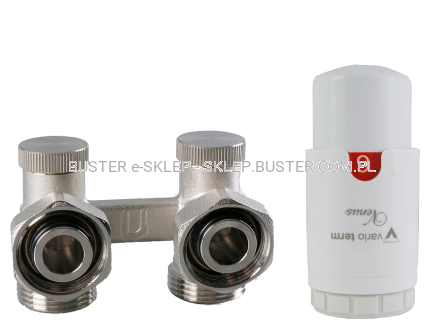 Zestaw instalacyjny „Typu V” dwururowy wersja kątowa GZ ¾” / GW ¾”. Głowica termostatyczna (Gwint: M30x1,5).
