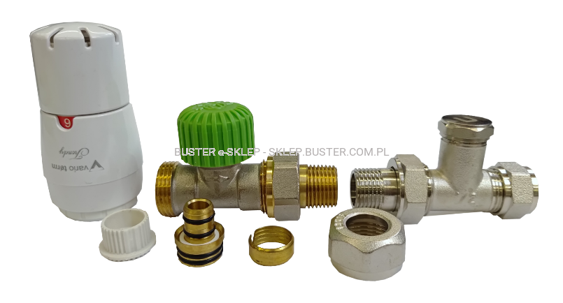 ZESTAW INSTALACYJNY PROSTY TRENDY PEX Z ZAWOREM TERMOSTATYCZNYM, ODCINAJĄCYM I GŁOWICĄ BIAŁĄ